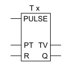 Časovač generuje stav Log.1 na výstupu Q po uplynutí nastaveného času PT (preset time) po tom, co přejde řídící vstup do stavu Log.1 a